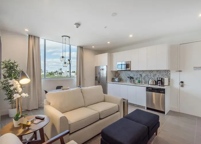 O apartamento Apto Moderno A 5Min Da Praia Em South Beach proporciona aos hóspedes a conveniência de comodidades auto-suficientes, como cozinha equipada e zona de refeições para sua diversão. A paragem Free Trolley SOBE Loop A pode ser encontrado próximo deste apartamento.